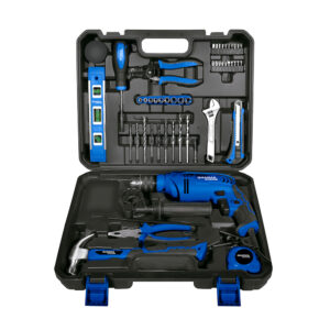 Este producto fue diseñado con reversa y percusión para perforar, taladrar o percutir con la mecha adecuada , madera, metal, mampostería, concreto, vidrio y cerámica. Provisto de maletín con kit de herramientas manuales ideales para para complementarse en las tareas cotidianas del hogar.