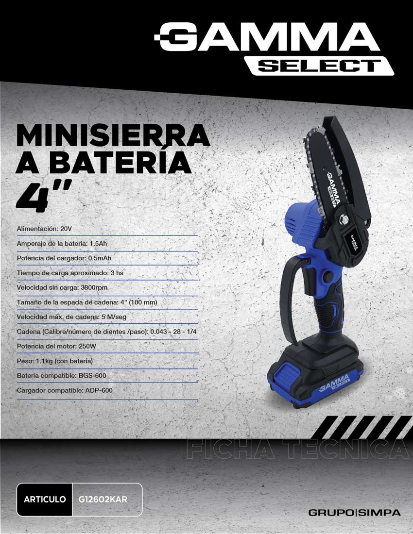 Sierra a batería de 100mm diseñada para el retoque y corte de ramas pequeñas.