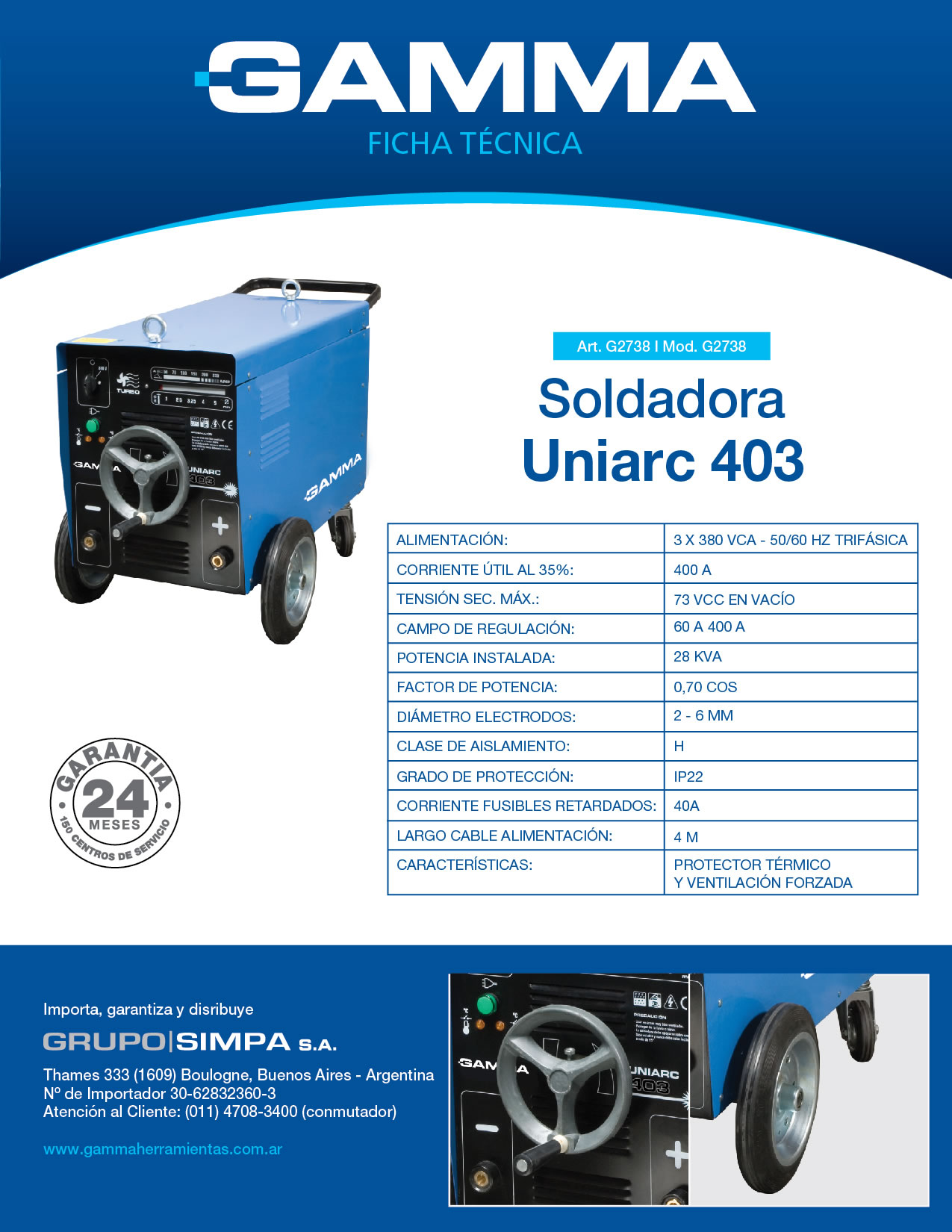 Producto diseñado para unir piezas metálicas utilizando el calar generado por un arco eléctrico. La alimentación del arco es generada por la corriente continua entregada por la máquina.